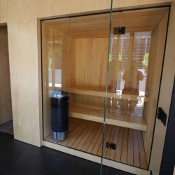 FinnaSauna received a prestigious commission from a client who wanted a custom sauna at their luxury home in Castor Bay. They required us to design and install, within a designated space in their home, a sauna that could comfortably accommodate two to three bathers. The client specified matching panelling and benching in handcrafted Alaskan Yellow Cedar, and a black electric heater as a décor feature.