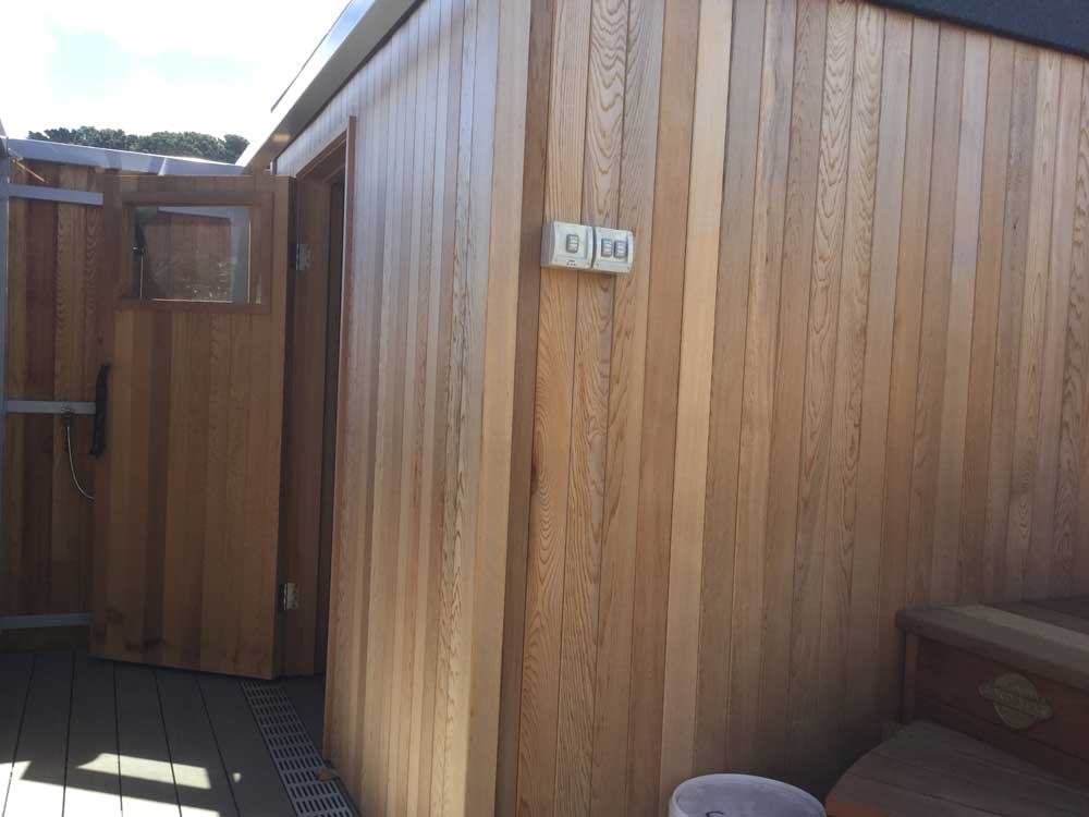 Our client wanted something special to take their sauna experience to a new level: a bespoke integrated outdoor sauna, shower and cooling tub area. The true Finnish sauna experience is simply not complete without a cool dip option! In lieu of snowbanks and icy ponds, the cooling tub would do nicely.