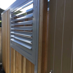 FinnSauna’s solution was to build the shower and sauna as one fully enclosed structure in the garden, with the cooling tub subsequently added by the client. The back wall of the sauna and of the cooling tub enclosure are flush with the house. The roofless cooling tub space is enclosed by timber screens, of which one has a louvre panel for a view of the garden. The uncovered shower space is directly outside the sauna door for convenience, and it is fitted with a half-length louvre panel plus a drainage system.