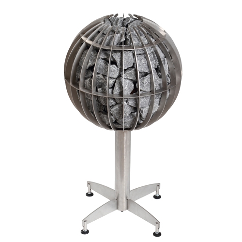 Harvia Globe sauna heater offers you a pleasant bathing experience, not only through heat and steam, but also through its unique design and excellent usability. Cast out your preconceptions about the position of the heater in a sauna! The Harvia Globe can be positioned on a wall, on a stand or even hanged from the ceiling. This freedom of choice also lets your imagination run wild when planning the bench layout for your sauna.