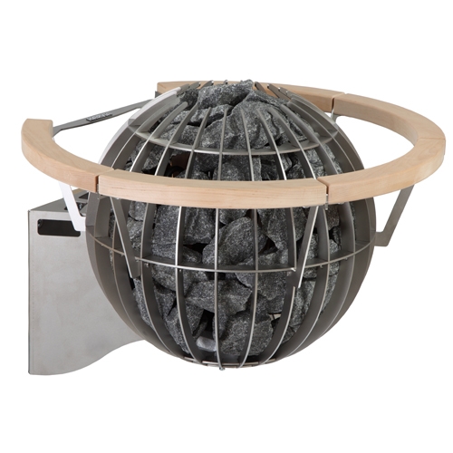Harvia Globe sauna heater offers you a pleasant bathing experience, not only through heat and steam, but also through its unique design and excellent usability. Cast out your preconceptions about the position of the heater in a sauna! The Harvia Globe can be positioned on a wall, on a stand or even hanged from the ceiling. This freedom of choice also lets your imagination run wild when planning the bench layout for your sauna.