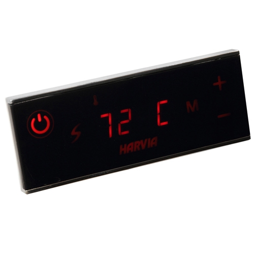 Harvia Globe heaters GL70 (Ø 430 mm) and GL110 (Ø 500 mm) are controlled with a touch-screen control panel. The user-friendly touch-screen control panel with a highly accurate temperature adjustment has been designed for your convenience according to Harvia's design principles. The simple and stylish splash-proof control panel can be placed inside or outside the sauna room. The heater includes a compact power unit, which provides electricity to the heating elements. The heater is connected to the power unit via a cable running inside an armored tube. The heater's temperature sensor is installed in the ceiling of the sauna room and connected to the power unit via a cable.