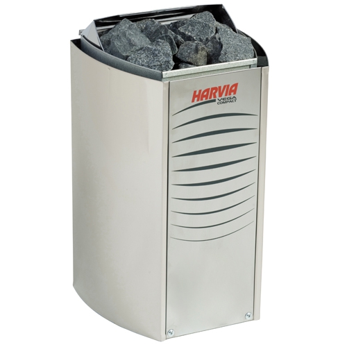 Harvia Vega Compact is a powerful package for a small sauna. Vega Compact is easy to use, because the operating switches are placed ergonomically in the upper part of the heater. The heater can be mounted very low on the sauna wall so it provides heat for the lower benches as well.